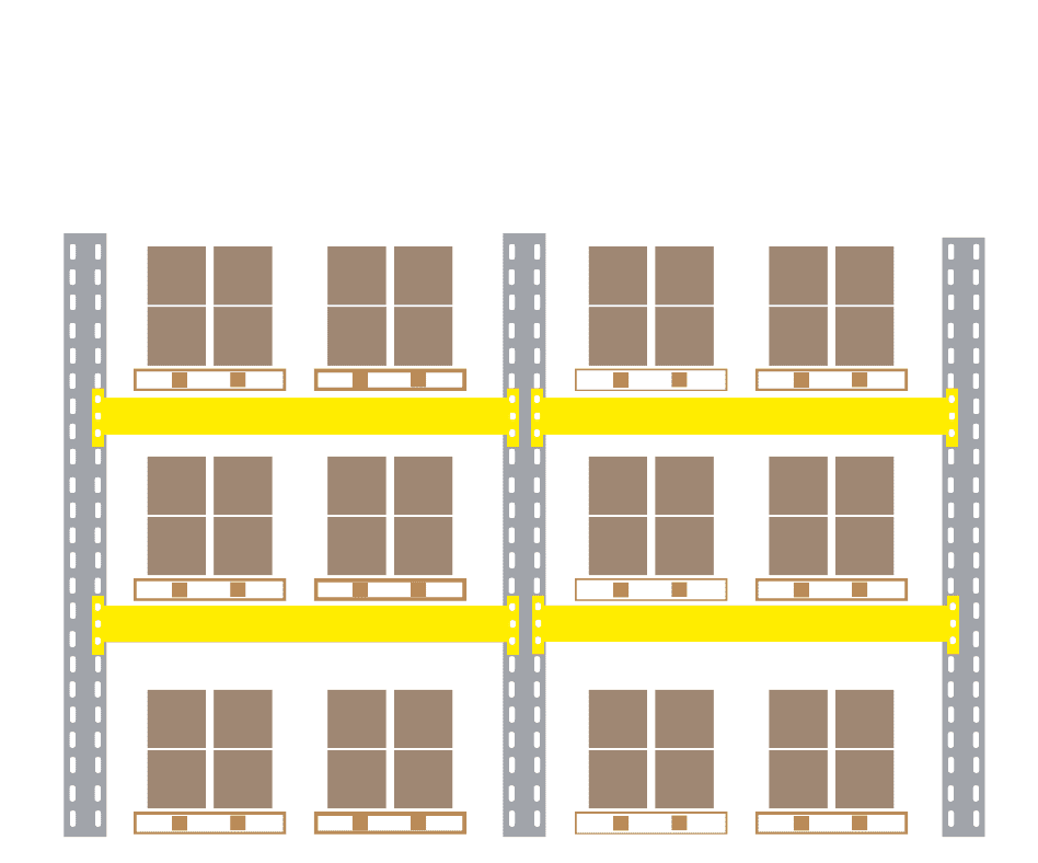 Pallets Stored 1200 mm Wide x 1000 mm Deep – 1000 Kgs Per Pallet